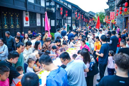 身着汉服的青年人手持木简吟诵《三字经》《弟子规》等启蒙经典,在朗朗书声中感悟先贤智慧传承文化精粹。乐队演奏《我和我的祖国》《歌唱祖国》等动人歌曲,熟悉的旋律在古镇街巷间循环回荡将节日的热闹氛围推向高潮。蔡家院子还将推出打糍粑活动,邀请游客参与“千锤百炼”捶打糍粑体验,在互动中感受节日的温暖与传统饮食文化的魅力。