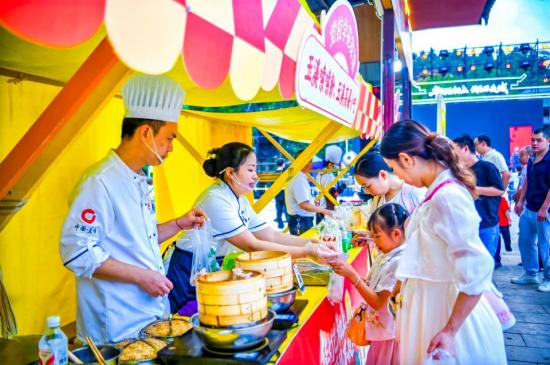 大型国庆主题打卡装置格外吸睛,成为游客拍照留念的热门地点。“美食荟萃区”多彩凉粉色泽诱人、怀旧零食铺满是童年记忆、在舌尖品味古镇烟火与风雅,唤醒过去与当下的食光记忆。