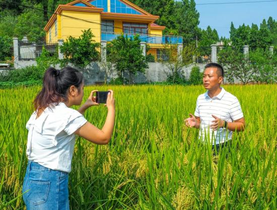 从中国国际电视台镜头里“将设计图画在乡村大地”的实干家,到《重庆日报》笔下扎根田埂的“网红书记”,太安镇太平村党支部书记文春来,正通过一方手机屏幕,向世界展示乡村的崭新图景。在太平村的稻田里,文春来举着手机,热情地向网友推介:“大家看,今年谷子颗粒饱满,又是个丰收年!收完我们就在直播间售卖,记得关注!”谁能想到,这位熟练玩转镜头的“网络达人”,曾是城市里的一名室内设计师。如今,他将设计图纸铺在家乡的田野上,以新媒体为笔,绘出太平村充满希望的振兴实景。