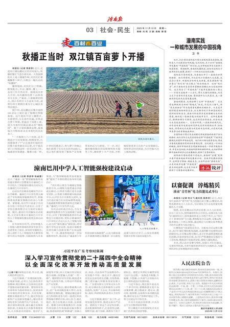 本报讯(记者陈芷琦)近日,市人大常委会副主任、党组成员,市总工会主席陈元春率队来潼南区,调研全过程人...