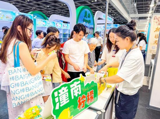 本报讯(记者邓瑜欣)8月15日,香港会议展览中心内人潮涌动,第35届香港美食博览会举行“重庆味道”专题推介会。潼南作为重庆代表区县,向全球采购商展示潼南投资机遇,推介潼南柠檬外贸产品。