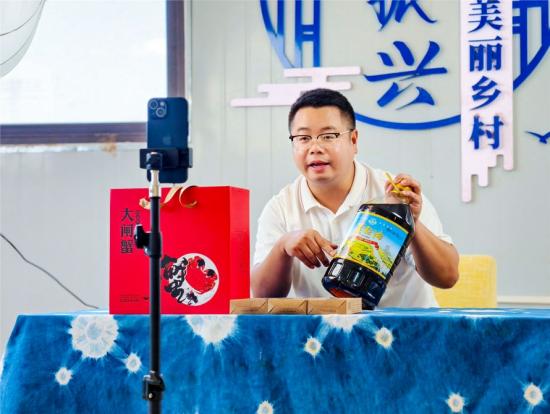 清晨,滕文强卷起裤腿走进稻田查看水稻长势和水产生长情况。“甲鱼已实现繁育、养殖、销售一体化,大米再过半个月收割上市,大闸蟹十月就能捕捞,鳜鱼新苗明年上市。”他如数家珍地介绍,顺手拍下几张稻穗的特写照片。“这些素材待会直播时正好用得上。”滕文强看了看时间,快步走向工作室搭建的直播间,熟练地支起三脚架,调整好镜头角度。