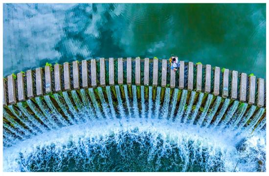弧形水坝如琴键,流水作音符倾泻。时光在此放缓了脚步,心也跟着沉溺进这温柔的韵律里。特约摄影 王华侨