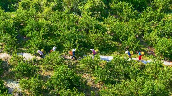 据基地负责人邹卫东介绍,该基地种植佛手5000余亩,今年产量预计200余吨,常年有近40名村民在这里务工,每年为他们发放工资近70万元。