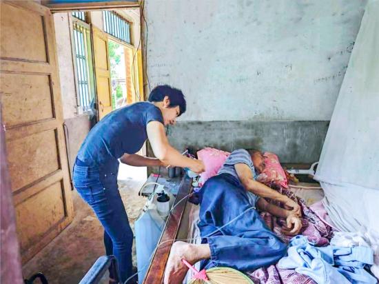 “我丈夫2014年因膀胱癌去世,治病欠下30多万元外债,家里公公婆婆年近八旬,母亲又患类风湿。”陈帮群告诉记者,“当时医院劝我放弃,但是我不能放弃。父母在家就在,债可以慢慢还。”为了避免来回颠簸40公里路去医院,陈帮群托人从医院买回氧气瓶、雾化机,跟着护士视频学打针,“第一次给爸打留置针,手抖得扎不进去,爸说‘闺女,你扎吧,我不疼’。”
