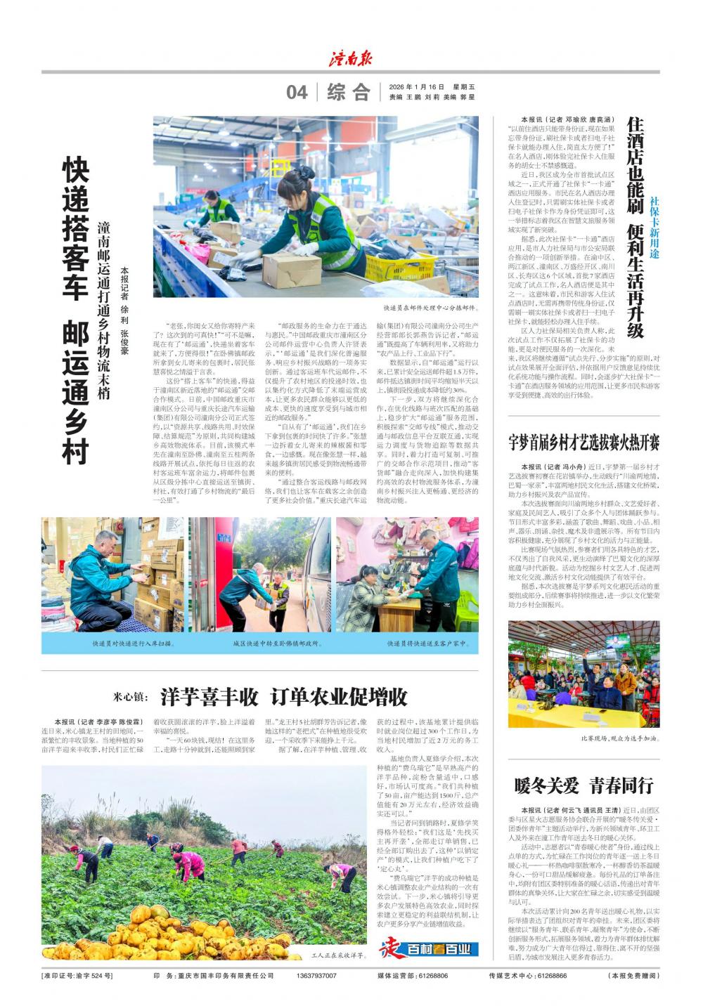 本报讯(记者陈芷琦)近日,国家邮政局办公室公布2025年快递业服务现代农业典型案例名单,潼南区快递服...