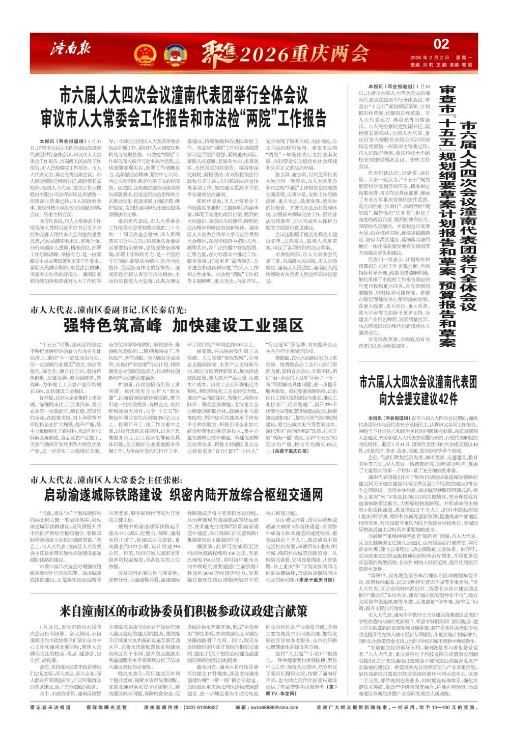 蓝图绘就千般景,两江潮涌千帆竞。2月1日,市六届人大四次会议圆满完成各项议程,胜利闭幕。我们向与会代...