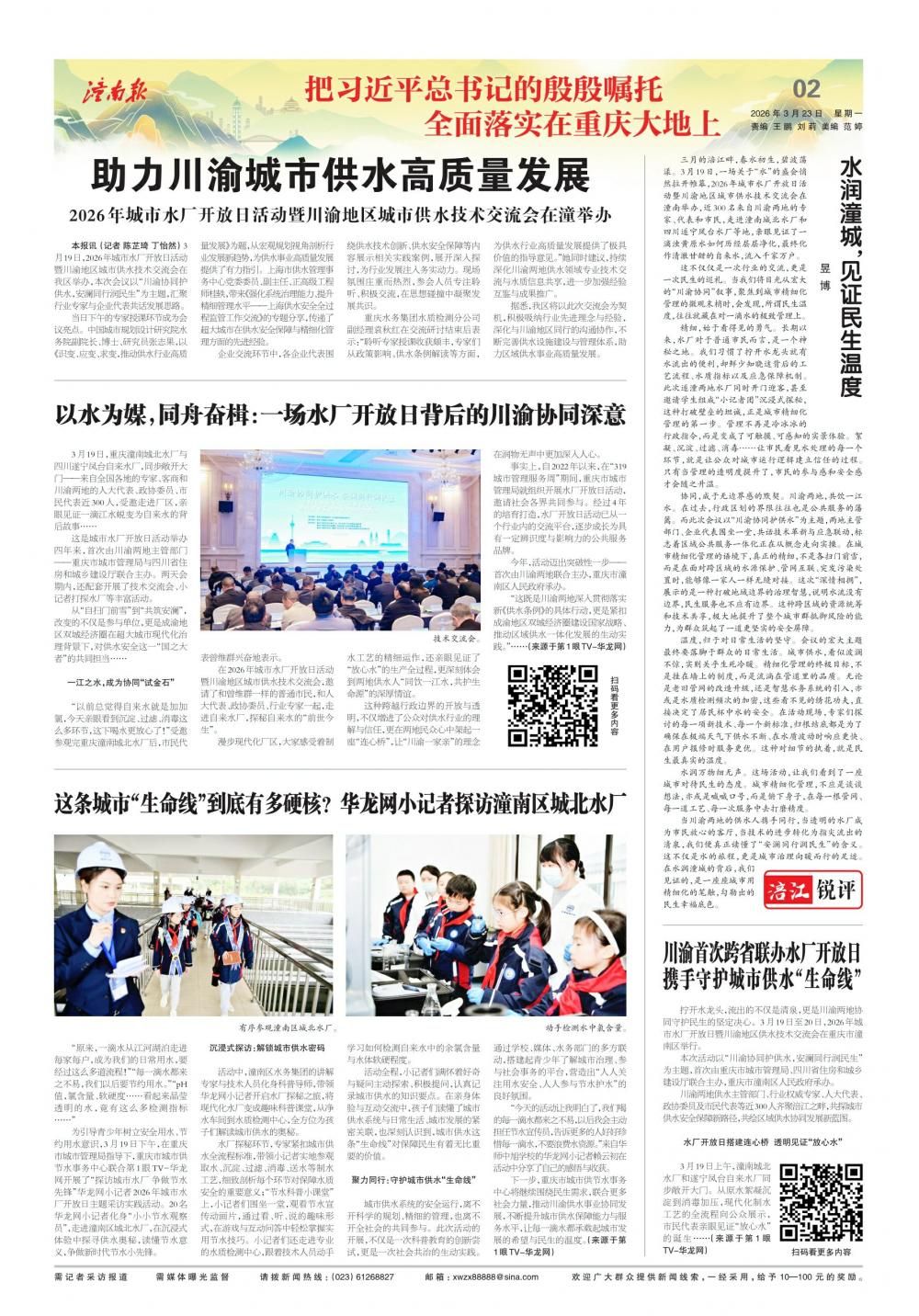 本报讯(记者马艾)3月19日,由重庆市城市管理局、四川省住房和城乡建设厅主办,川渝两地供水行业主管部...
