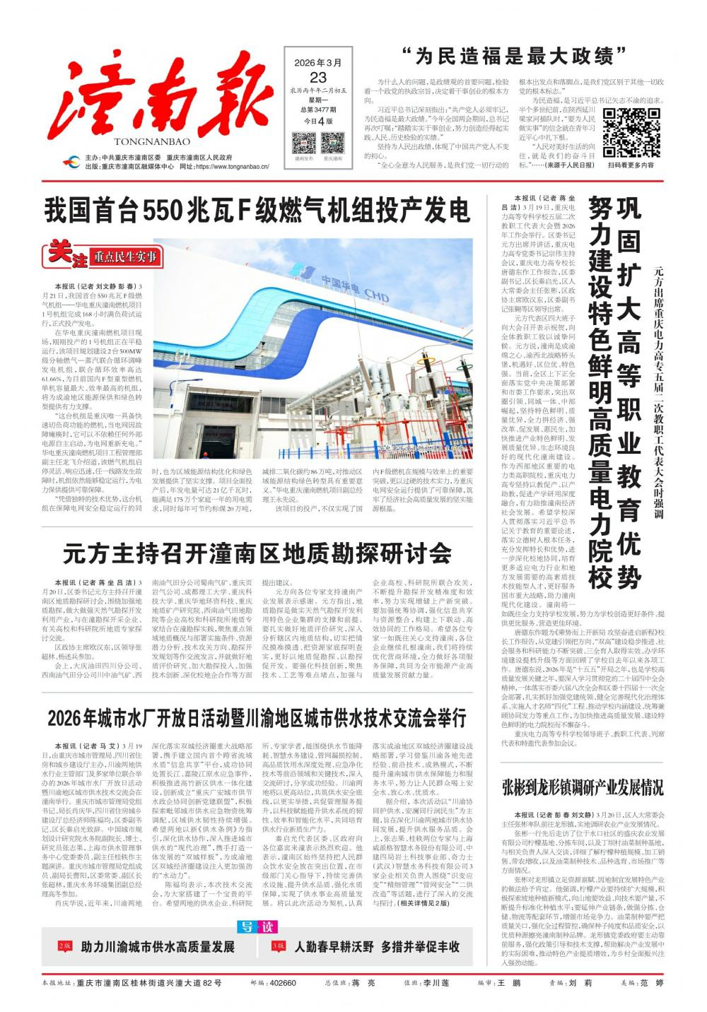 本报讯(记者刘文静彭春)3月21日,我国首台550兆瓦F级燃气机组——华电重庆潼南燃机项目1号机组完...