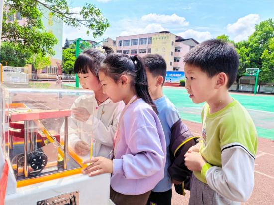 活动现场,集知识性、趣味性、互动性于一体的科普展品整齐排列。同学们三五成群围在展品前,或凝神阅读操作说明,或动手尝试实验装置,在自主探索中一步步揭开科学原理的面纱。大家在“看一看、试一试、问一问”中近距离感受科技的神奇,校园里洋溢着浓厚的科学氛围。